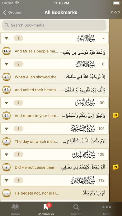 ブックマーク機能が搭載されているので、コーランのお気に入りのページをブックマークし、見たいときにいつでもすぐに表示させることができます。数に制限はないのでたくさんお気に入り登録しちゃいましょう。