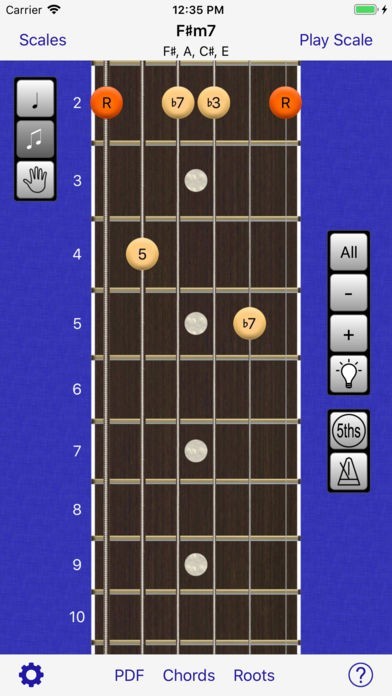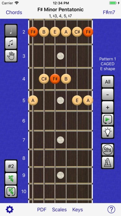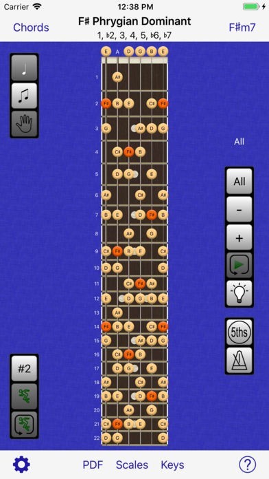 • Display and playback scale positions and chords covering the fretboard