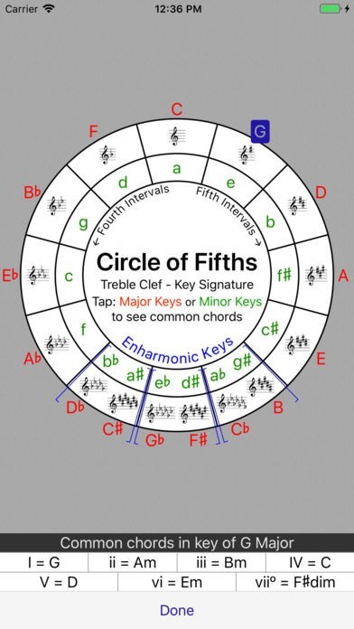 • Circle of Fifths with chart of common chords in each key