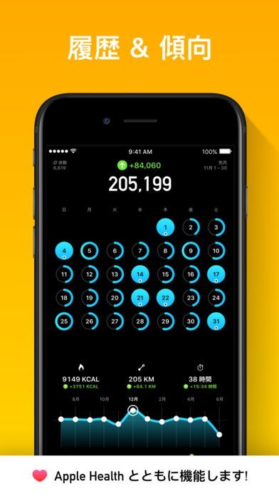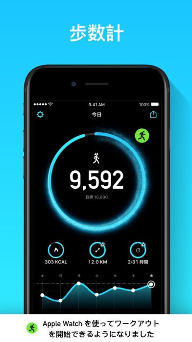 歩いた歩数と歩いた距離をトラッキングして分かりやすく図示してくれるので、ウォーキングが楽しくなります。