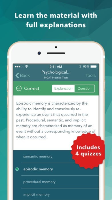 App Storeより引用Let the experts at McGraw-Hill be your study guide. Based on the new MCAT2015 exam, this premier study tool has it all. Enjoy a wealth of essential information right at your fingertips. MCAT Practice Tests is the ideal way to sharpen your skills and prepare for the exam.