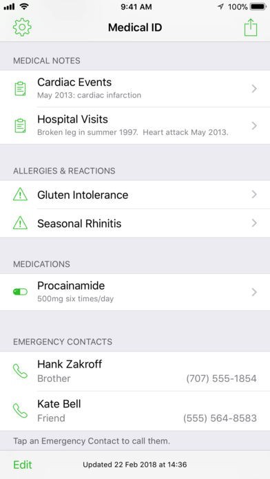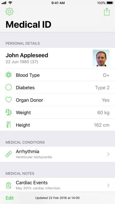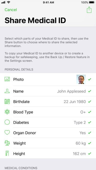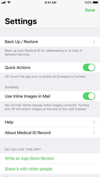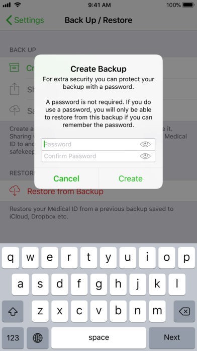 Back up your Medical ID to iCloud, Dropbox etc. for safekeeping or to copy it between devices.