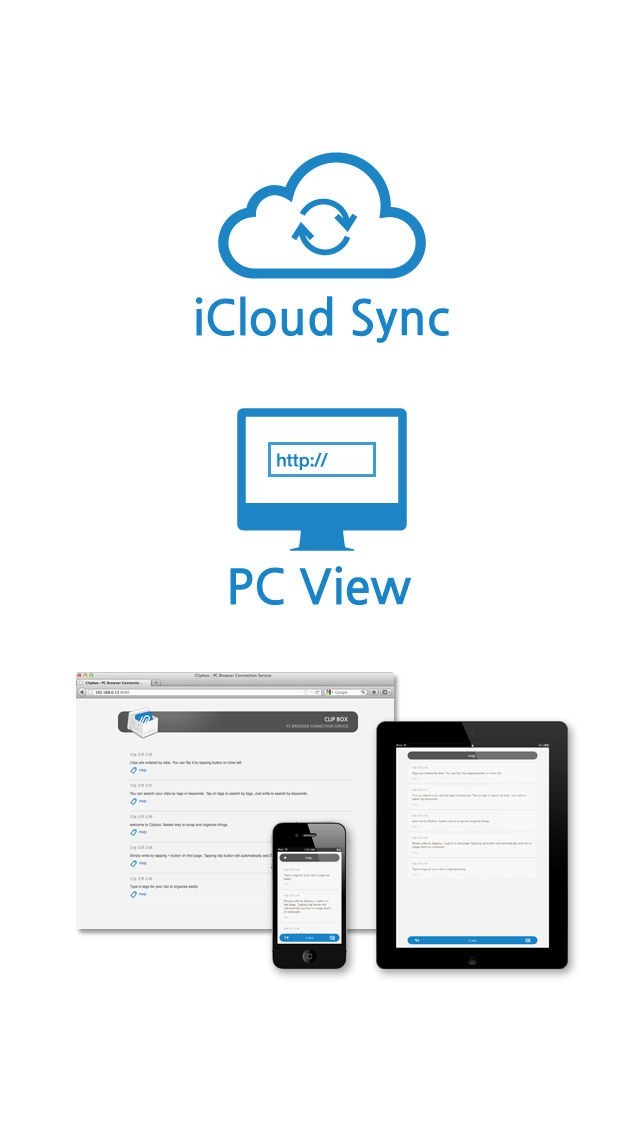 App Storeより引用クリップボックスを通じて簡単にスクラップしてノートと写真を集めてください。今思い出した考えを書き留めた用途としても最適です。、アイフォーンやアイパッドでいずれも動作するユニバーサルアプリでアイクラウドを通じて作成したクリップが共有されます。