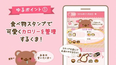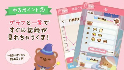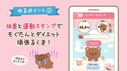 クマさんが可愛い。アプリを使う度に応援してくれるので、モチベーションを保ちながらダイエットができました。