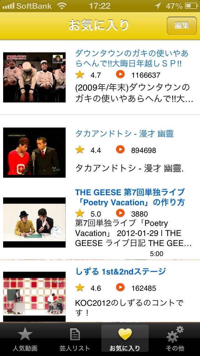 ∑(゚Д゚)まるで音楽アプリみたいに、お笑い芸人のネタ動画を再生できる!!