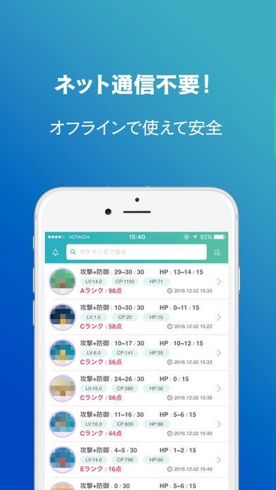 複雑であった個体値を一瞬にして検索可能になりかなり重宝するアプリ!