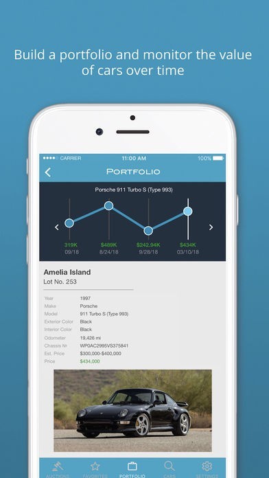 Put together a group of cars you want to track over time. Your Portfolio will chart matching results and email you an update when cars on your list sell at auction.