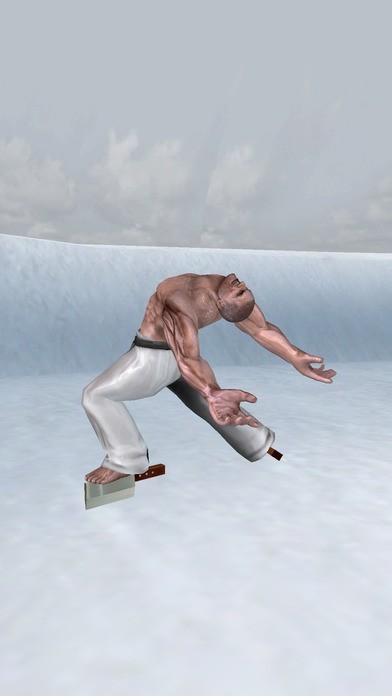 「フィギュアスケートアルティメイタム」は上半身裸の空手家となって華麗にフィギュアスケートを楽しむことができるアプリとなっています。最初は包丁をフィギュアシューズの代わりに着用していますが、華麗にスケートを滑ってポイントを稼ぐことでシューズをカスタマイズして、よりスピーディーに、高くジャンプして高度な技を繰り出すことができるようになります。操作方法は簡単でタイミングゲージの針がグリーンゾーンに入っているときに画面をタップすることで技を繰り出すことができるようになっていて、成功するたびに針のスピードが上がるのでタイミングが取りづらくなっていきます。