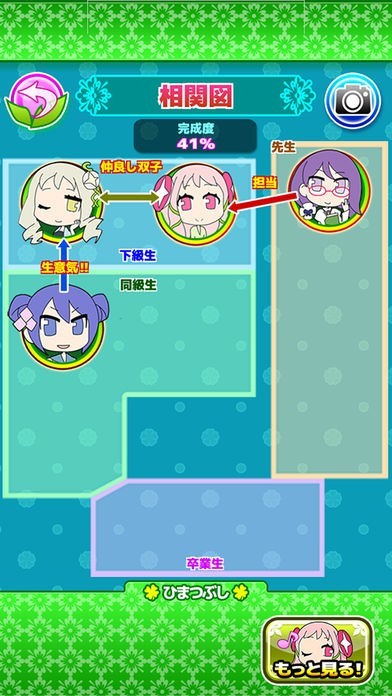 学園内の人間模様が一目で分かる相関図を用意、徐々に埋まっていく相関図を完成させよう!