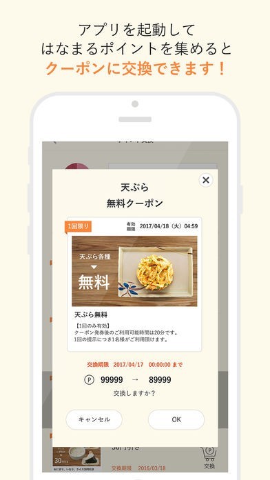 はなまるうどんアプリの「はなまるチャレンジ」は、驚きの大量ポイントです!天ぷら100円引き券やおにぎり・おいなり50円引き券等に交換できます。私も毎日、チャレンジ報告をして、クーポンと交換しています。