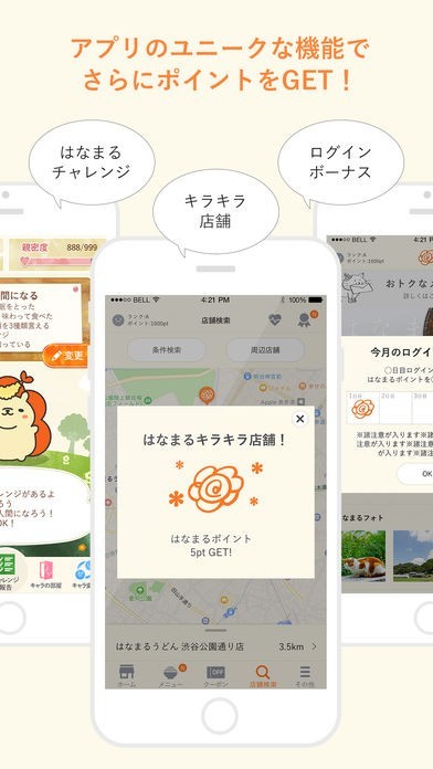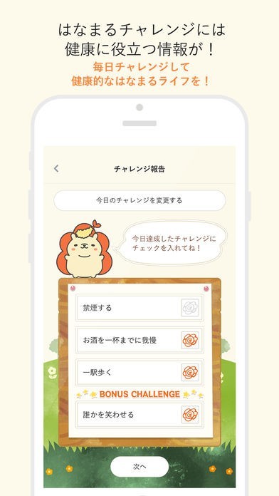 外回り時のお昼によく行くのでクーポン目的で入れたのですが驚きました。はなまるチャレンジという機能でお気に入りのキャラクターと健康についてお勉強することができます。気になって毎日開いてしまいます。