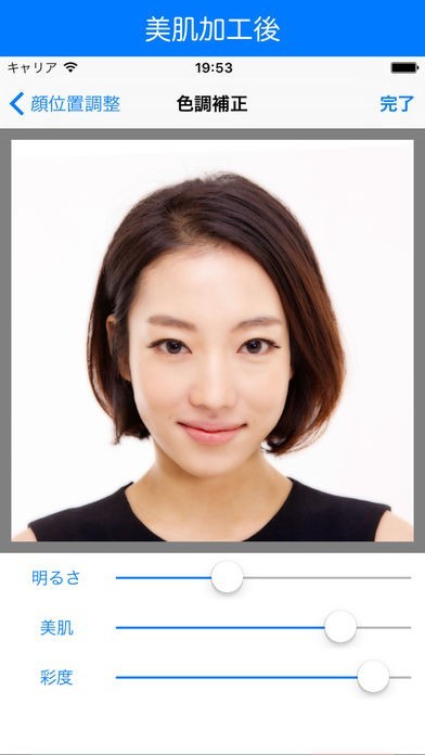 証明写真を取りに行くと結構高い料金がかかるためこのアプリを利用しています。美肌加工付きで綺麗に取れて満足しています。