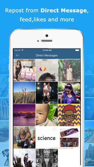 With Repost Quick, you can easily repost photos and videos from Direct Message, your new feed, from Popular and from those of other users.