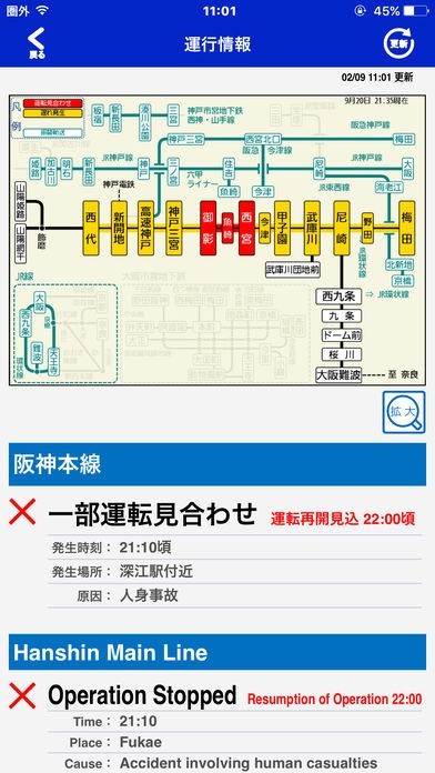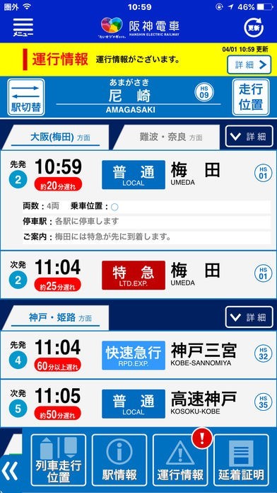 運行状況が分かるので、阪神電車を利用している人にはぴったり!
