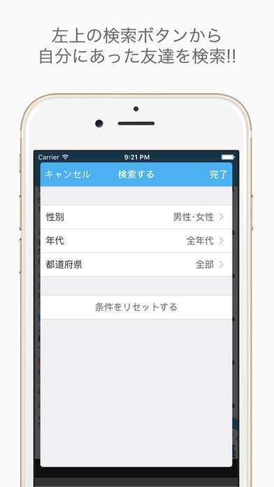友達を探すときは性別・年齢・都道府県での絞り込みもバッチリ!
