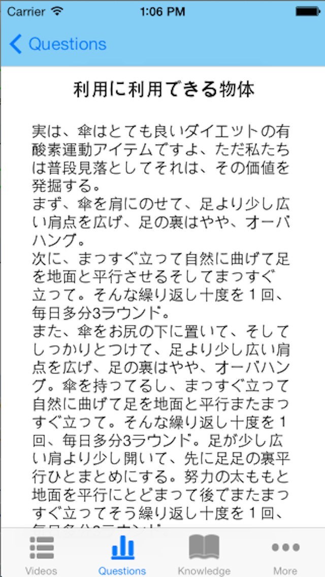 アプリにはエクササイズの動画だけでなく、トレーニングの際に注意したい点や、ワンポイントアドバイスなど有益な情報をたっぷり収録しているので、トレーニングに関する知識も身に付きます。