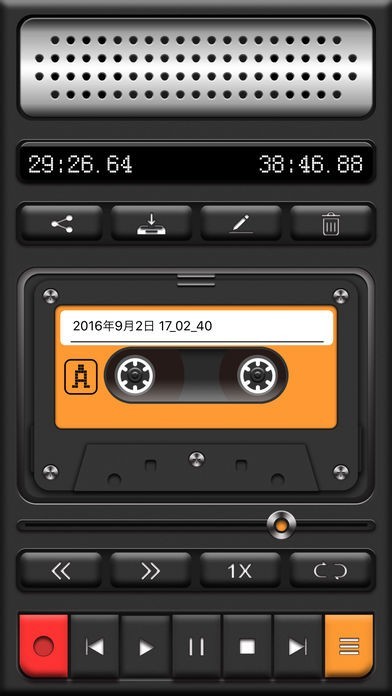 テープレコーダー Pro - 録音AppはMP3録音が可能な録音アプリですが、ビジュアルでカセットテープが表示され、録音/再生している間はテープが作動するアニメーションが表示され動作がわかりやすくなっています。