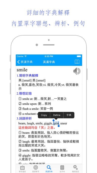 6.簡約的英漢字典功能,再也不怕遇到不認識的單字了;