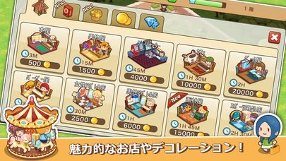 - 28個のかわいい建設施設!じゃんじゃんコインを稼いで立派なモールにしよう!