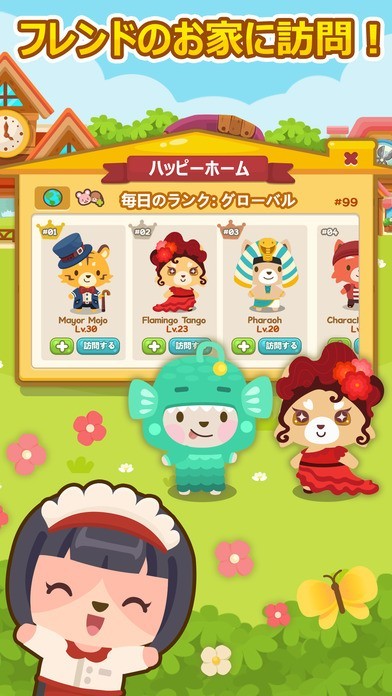 - フレンドのタウンに訪問して、世界中の新しいプレイヤーと仲良くなろう。