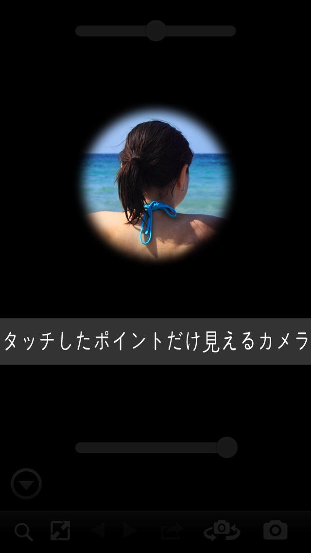 黒い画面で、画面にタッチした部分だけカメラが見えるようになります。