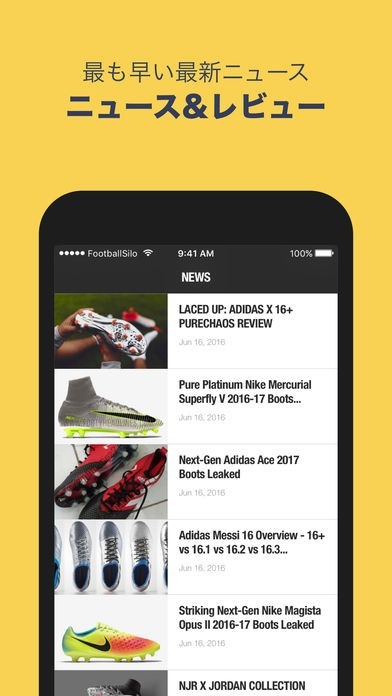 「Football Silo - サッカーシューズのニュース」は、スマートフォンでサッカーシューズに関するさまざまな情報をチェックすることができるアプリになります。最新のサッカーシューズに関する情報だけでなく、新作シューズの発売スケジュールをチェックしたり、ユーザーによるレビューを見ることができます。