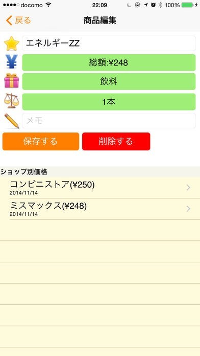 App Storeより引用ショピメモはお買い物メモをつけながら、普段よく買う商品の底値を記録できるアプリです。