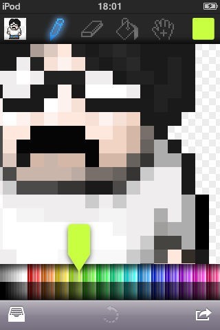 App Storeより引用誰にでも扱いやすいドットエディタです。32×32 のドット絵を作成することができます。通勤・通学のひまつぶしなどにどうぞ。