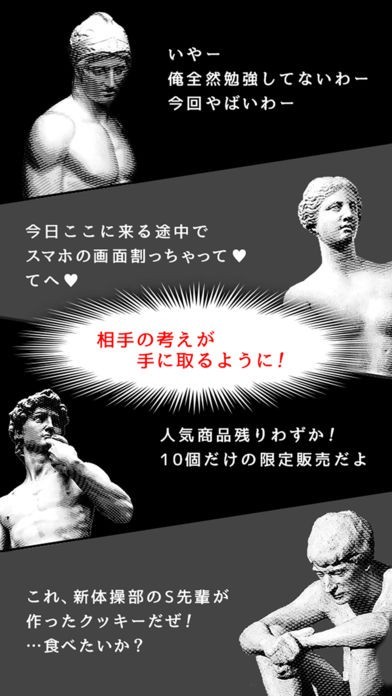 このアプリは人間関係を円滑にするための、ちょっと裏技的な心理学が楽しみながら身につくように設計されたゲームです。