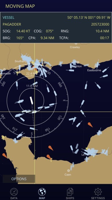 - Built-in moving map for use when offline and offshore; the whole world is included, no need to download it