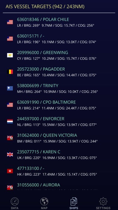 - AIS info including Name, MMSI, SOG, COG, RNG, BRG
