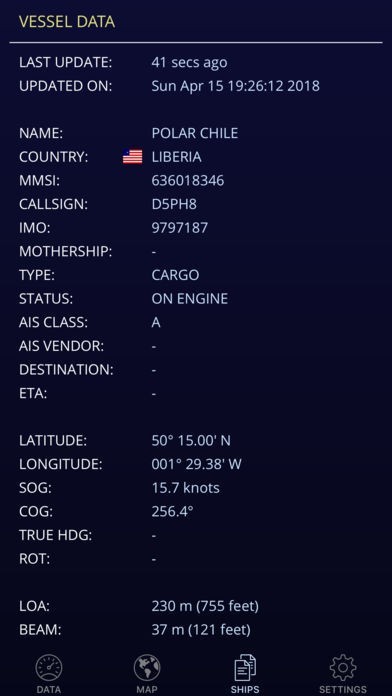 With Cloud AIS, providing you have Internet connectivity and there is land AIS coverage, OceanTrack comes with complimentary AIS information data with thousands of ships sailing around the world at any given moment. See ships anywhere and tap on them to discover who they are, how far they are or where they're going.