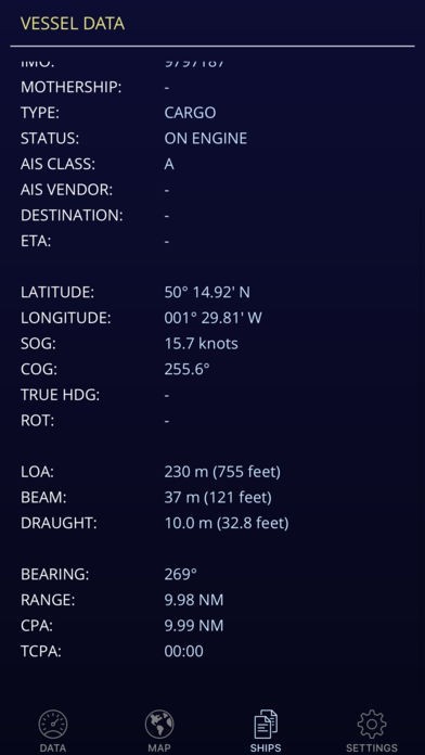 - Advanced calculation of CPA and TCPA to any AIS ship