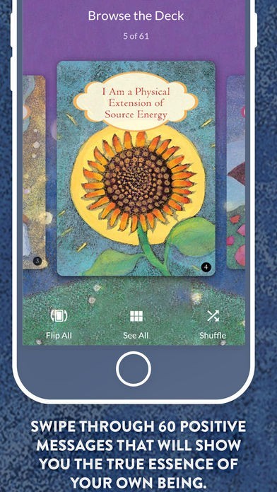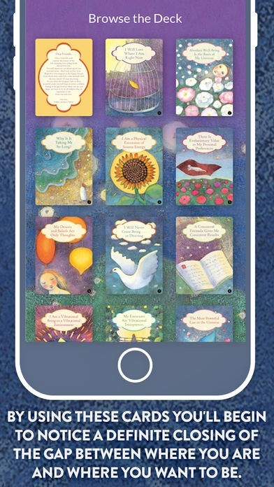 App Storeより引用These beautiful cards capture the essence of the life-changing, best-selling book Ask and It Is Given. You will experience an enhancing of your personal power, which may, at first, seem illogical or even magical, as the Energy Stream from which these cards have come dovetails with the true essence of your own being.