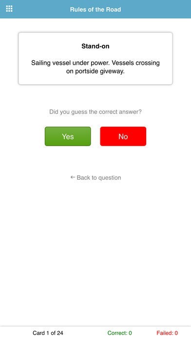 Testing sections includes Flags, Iala Buoyage, Day shapes, General Nautical knowledge, Fire Extinguishers, Sound Signals, Navigation Lights, Phonetic Alphabet, Collision Regulations and more.