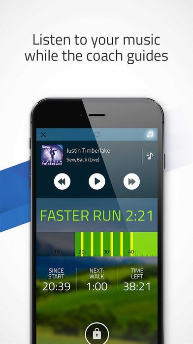 ● audio coach tells you when to walk / run / faster