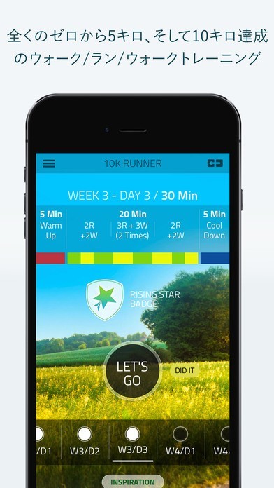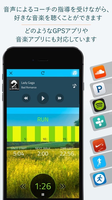 ランニング初心者でも、14週間で10kmを完走できるようにするのがこの「10K Runner」です。音声ガイド聴きながら歩く、走るのインターバルトレーニングを行います。まずは5km走、次に10km走と距離を延ばしつつ走力をアップ目指します。フィットネス目的でもフルマラソン挑戦でも、あなたの目標を達成するのをサポートします。