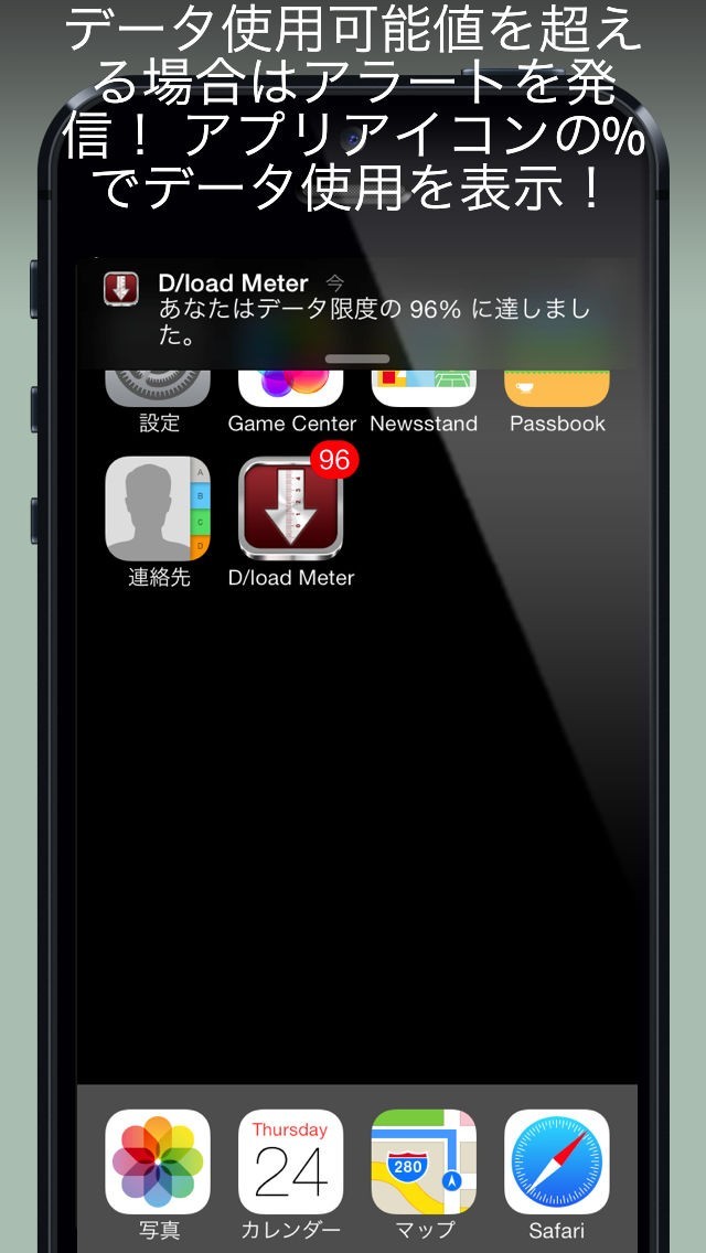 間違って通信量を使いすぎないように警告を出すことができます。カウンターに指定した限界量を超えてしまうとアラートやアイコンで知らせてくれます。また、月単位や日単位などで警告を出すこともできます。
