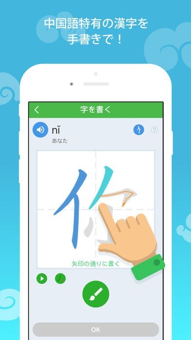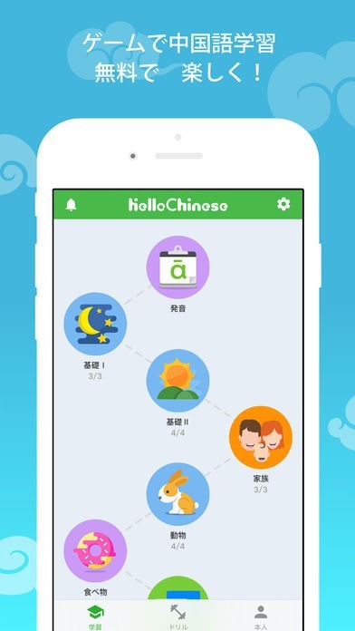 HelloChineseは幅広い内容を網羅した中国語の学習アプリです。 中国語初心者にとって難しいのがピンインの読み方ですが、中国語ネイティブの発音が収録されており、本格的な発音を参考に練習することが可能です。さらに、スマホの音声認識機能を使用して発音のチェックも可能で、中国語の発音を1人だけで鍛えてゆけるようになっています。 そして、ゲーム形式で学習を進められるように配慮されているので毎日続けやすく、漢字を指でなぞって書きながら覚えることもでき、中国語初心者が学習しやすい内容となっています。 中国語の習得に必要な、読み書き聞き取りをこのアプリ1つで網羅しており、中国語学習者にとって便利なアプリとなっています。