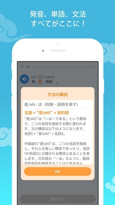 中国語全般の勉強を網羅しているこのアプリ。使いやすく、特に発音の勉強に役立っています。