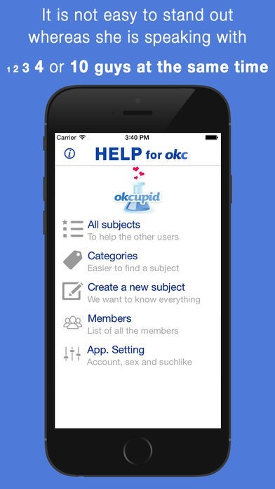 Help for OkCupid* puts hundreds of conversation starters, tips and jokes in your pocket, so you'll never be stuck for words again.