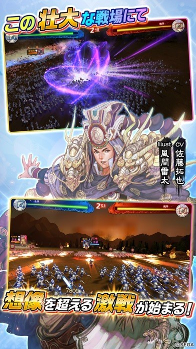SEGAよりライセンスアウト支援のもと、武将カードのイラストや一部のボイス、戦場デザイン等『三国志大戦』IPを引き継ぎつつ、モバイルゲームとして新たに生まれ変わった次世代の超本格戦略型カードRPG『三国志大戦M』、いま、ここに始動!