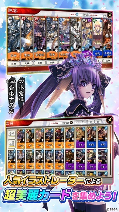 三国志の魅力は、広大な大陸を舞台に繰り広げられる壮大な歴史ドラマと、個性豊かな英雄や美女たちの群像劇です。武将ひとりひとりの個性をベテラン声優さんに熱演していただきました!迫真の演技をぜひゲーム内でご体験ください!