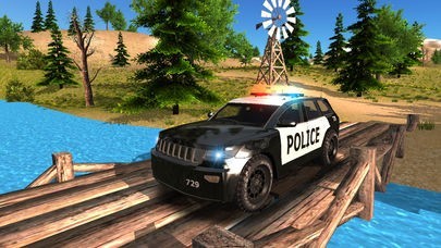 Police Car driving Offroad 4x4ではアメリカを舞台としており、空港や農場、山や森など様々な風景を楽しむことができ、細い木の橋を渡るというミッションも用意されます。