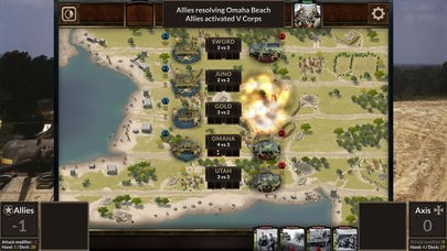 App Storeより引用This 1 on 1 card game recreates the drama of the day Allied soldiers went ashore in occupied France, 6 June 1944. Each of the historic landing beaches - Sword, Juno, Gold, Omaha and Utah - is represented by its own card, as are the defending German divisions and attacking Allied units. The Allies must marshal their resources to gain and secure control of as many beaches as they can by day's end: a run-through of the 110-card deck.