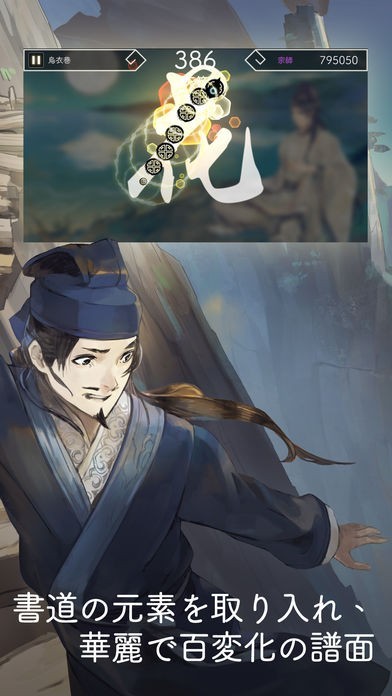 ゲームでは音楽のリズムに合わせて画面をタップするだけではなく、書道で文字を書くように画面をなぞると字幕のように詩歌が現れます。遊ぶだけではなく漢字の美しさも楽しめるゲームです。