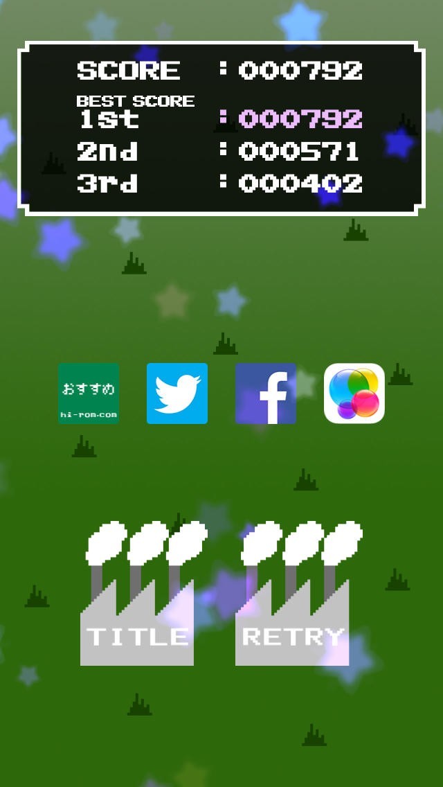 ワンプレイに掛かる時間が短く隙間時間でのプレイに最適、種類の異なる工場建設と、長押し操作による飛距離調整が攻略の鍵