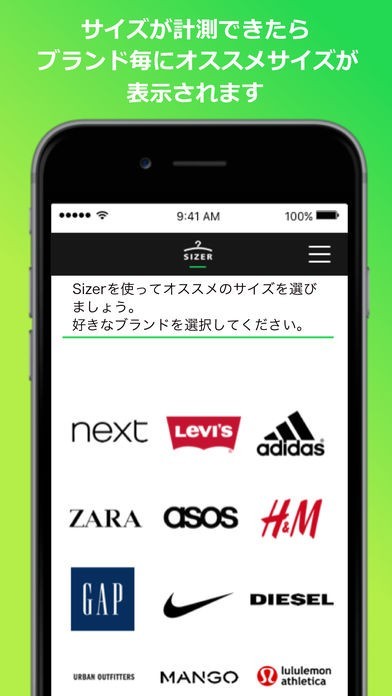 App Storeより引用洋服をオンラインで購入する際、Sizerはあなたにぴったりのサイズをアドバイスしま