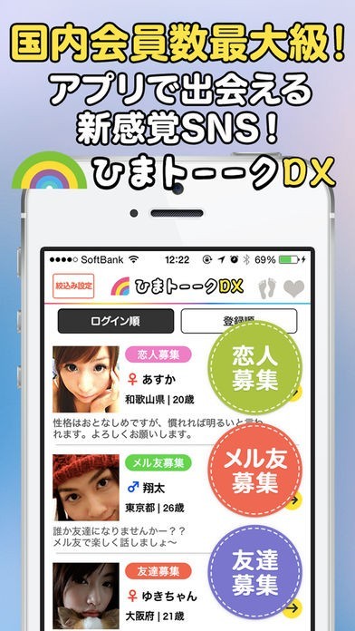 チャット友達募集、話し相手探しなど、暇つぶしアプリの決定版!