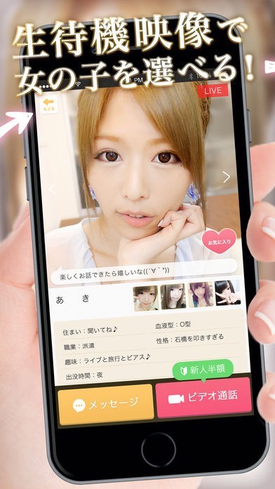 話してみたい女性を選んで1対1のビデオトークやチャットができる!